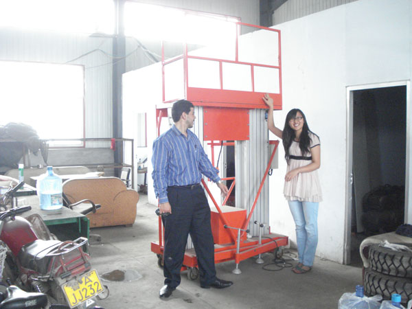 印度客戶來我公司選購鋁合金升降機http://www.djlingshen.cn/